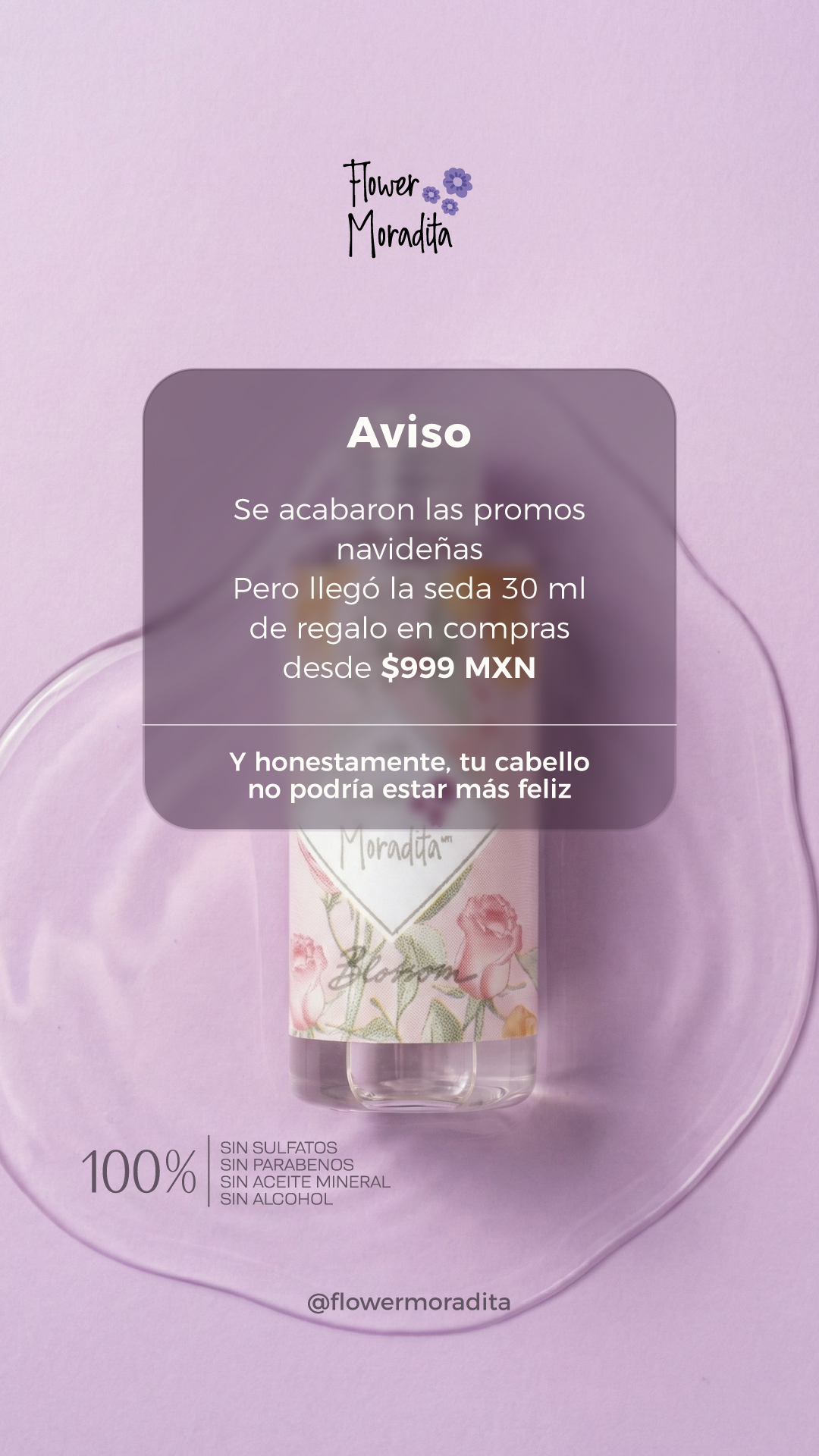 Flower Moradita es una marca mexicana creada con amor y propósito, que transforma el cuidado capilar en un ritual de bienestar. Nuestro producto principal, el perfume para cabello, combina fragancia...